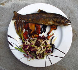 In the table following the various common edible species are rated using four basic cooking processes. The basic processes detailed below are sautéing, tempura frying, microwave and drying. By preparing the various species in these basic ways we can learn how to best use them in more complex recipes. Rather than offering up recipes, the provided ratings and the comments on the species pages are meant to help guide your own culinary creativity. Some comments about other processes such as grilling or boiling may be found on pages of certain mushrooms. The various mushrooms are like vegetables. They have different flavors and widely varying textures, colors, moisture content and water absorbency . Hence, the various species respond to cooking processes differently. Many mushrooms only respond well to certain cooking techniques. I have seen well known TV chefs on popular television shows do absolutely dreadful things with wild mushrooms. I have heard them say things that showed they were not well versed in the mushrooms they were using. Don't bother with wild mushrooms if you are going to mix in button mushrooms (Agaricus bisporus) from the store! It's a bad idea unless you want your wild mushrooms to taste like the strong flavored agaricus. A recipe that calls for "mixed mushrooms" or just "mushrooms" is only a good recipe if you know which mushrooms mix or match well. Like David Arora says, "If you can't taste it, you waste it". Many mushrooms may be associated with an appropriate wine. I consider a chanterelle to be a white wine mushroom. Mixing chanterelles with other white wine mushrooms and matching chanterelles with foods normally associated with white wines is best. Many wild mushrooms are just too rare, subtle, and distinctive in flavor to be mixed or combined in certain ways. It makes as much sense as pouring Château Lafite-Rothschild Bordeaux into the holiday punch! There are some foods that are compatible with almost all edible mushroom species such as rice, potatoes, pasta, white sauce, cream, butter, and eggs. For safety's sake it is best to thoroughly cook wild mushrooms. There is plenty of bacteria in the outdoors and you could get sick from bacteria completely unrelated to the mushroom.