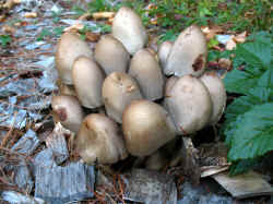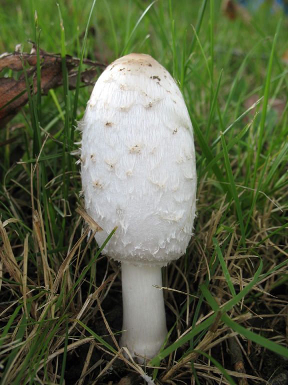 Shaggy Mane The Shaggy Mane, also occasionally known as the Lawyers Wig, is a distinctive and easy to recognize mushroom. It's size, shape, and tendency to grow in tight groups make it easy to spot even from considerable distance. Shaggy Mane (Coprinus comatus) has an elongated bullet shaped, shaggy cap, with brownish upturned scales and a straight fairly smooth stem. Cap Shaggy, scaly, whitish,1-2 inches wide, 2-6 inches tall becoming inky and gooey as it expands eventually leaving just the stem. Scales are upturned, whitish tan to reddish brown. Gills (lamellae) White, close, free gills that eventually becoming black and inky. Stem (stipe) Fibrous, hollow, straight white to tannish stem with a partial veil on the lower to middle area. It usually tapers somewhat becoming slight thinner near the top. Flesh White, quite soft and easily broken. Spores Black spores When and where to find them (ecology) These grow in summer and fall in grass, wood chips, rocky, or hard packed soil often appearing shortly after a soaking rain. They may grow singly or scattered but often in large, tightly packed groups. Some years they are very common in city and suburban locations, pastures, lawns, gardens, along driveways, etc. Sometimes they are found in huge quantities presenting quite a dilemma since they require almost immediate preparation. Preparation These should be collected at an early stage before becoming inky. They will turn inky within a few hours after picking and so should be prepared almost immediately. The refrigerator will slow down the process somewhat, but these will not keep. They have a pleasant, subtle flavor that is quite mild so mixing them with strong flavored foods or other mushrooms may cause the flavor to be lost. They will always be good sautéed and served as a stand alone dish. They are good deep fried in tempura also. I don't think they can be dried. Grilling or pickling may be a possibility. They will be satisfactory with eggs, cheese, white sauces, milder vegetables, chicken, fish, etc. Comments Shaggy mane is quite easy to identify but I hesitated to add them because of their very short window of usability and their passing resemblance to Coprinus atramentarius which can cause trouble when consumed with alcohol. Shaggy mane is quite common some years and has a nice but light flavor. Shaggys can be used for dyeing wool, some fabrics, or paper and will yield a gray green color when ammonia is used as a mordant and a bayberry color when cooked in an iron pot. You might have luck with making a slurry for propagating shaggys in your lawn by placing your older inky caps in water for a day or so to capture the spores in solution then pouring the water on your lawn.